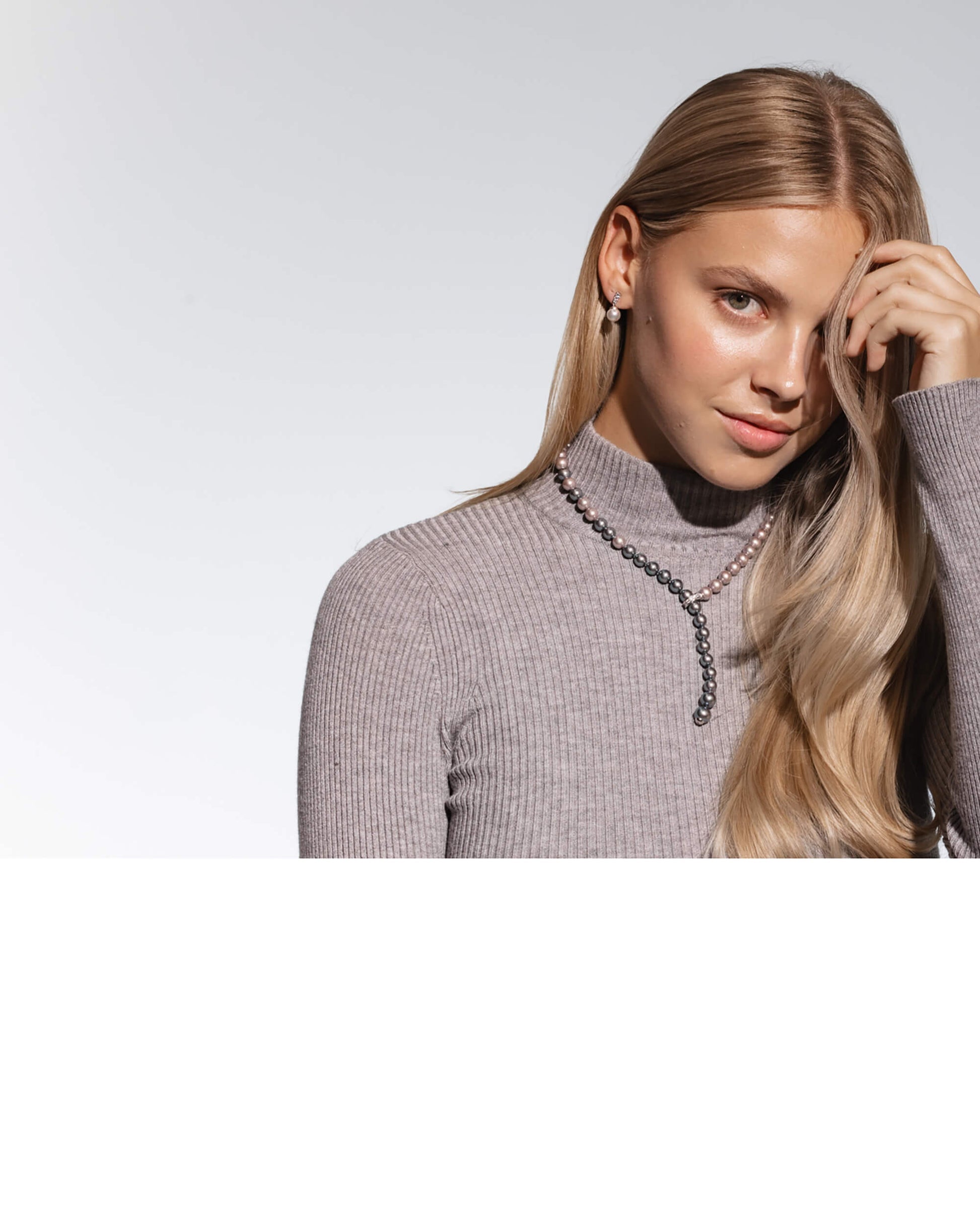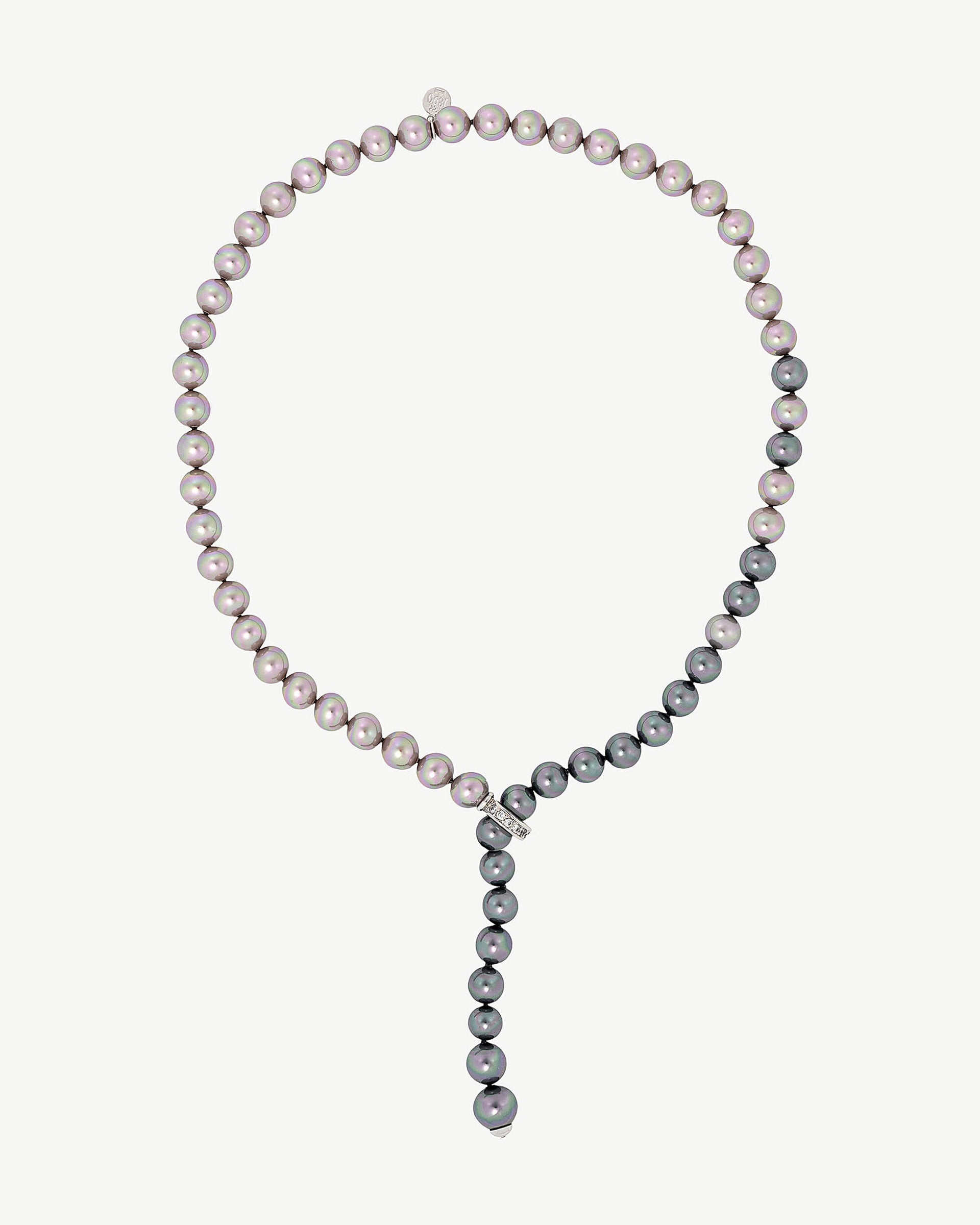 Short 50cm necklace in rhodium-plated silver, 8mm round gray and nuage pearls and zircons. Long pearl necklaces will never go out of style.Short 50cm necklace in rhodium-plated silver, 8mm round gray and nuage pearls and zircons. Long pearl necklaces will never go out of style.Short 50cm necklace in rhodium-plated silver, 8mm round gray and nuage pearls and zircons. Long pearl necklaces will never go out of style.