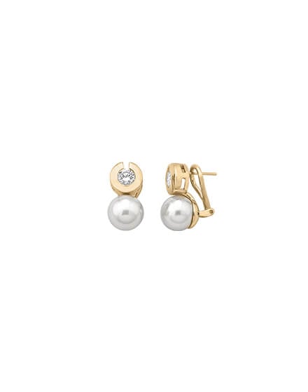 Short earrings, with spiked omega closure, made of plated silver. With 10mm white pearls and zircons. Along with the pearls, the zircons take center stage in this exquisite collection.Short earrings, with spiked omega closure, made of plated silver. With 10mm white pearls and zircons. Along with the pearls, the zircons take center stage in this exquisite collection.Short earrings, with spiked omega closure, made of plated silver. With 10mm white pearls and zircons. Along with the pearls, the zircons take center stage in this exquisite collection.