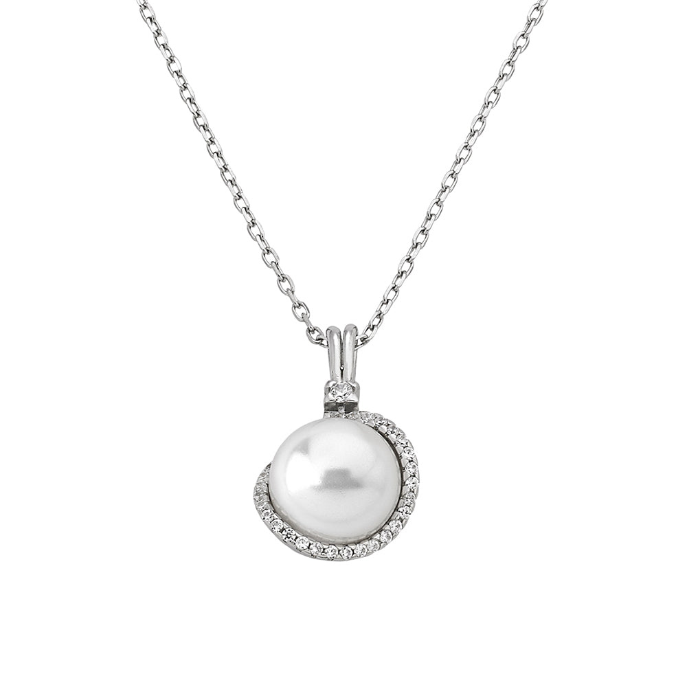 Link chain necklace in rhodium-plated silver. Adjustable length between 37 and 42cm. With pearl pendant 12mm round pearl and zircons around the pearl.Along with the pearls, the zircons take center stage in this exquisite collection.Link chain necklace in rhodium-plated silver. Adjustable length between 37 and 42cm. With pearl pendant 12mm round pearl and zircons around the pearl. Along with the pearls, the zircons take center stage in this exquisite collection.Link chain necklace in rhodium-plated silver. Adjustable length between 37 and 42cm. With pearl pendant 12mm round pearl and zircons around the pearl. Along with the pearls, the zircons take center stage in this exquisite collection.
