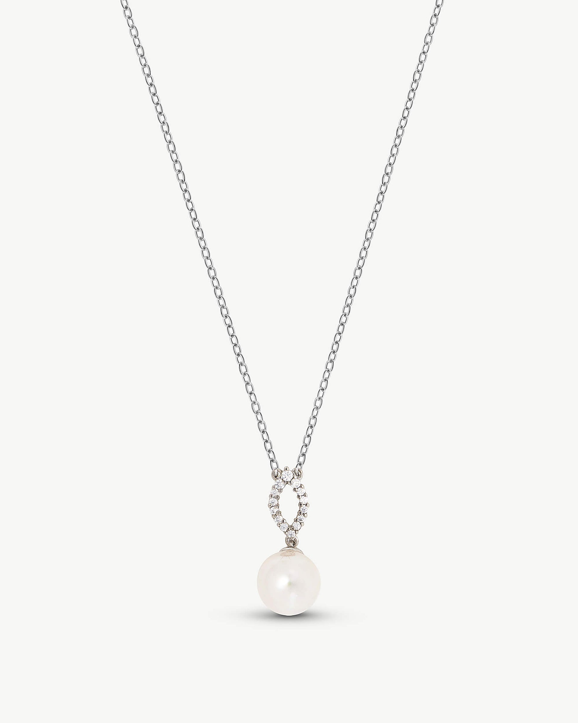 Short necklace 4247cm in rhodium-plated silver, 12mm white round pearl and zircons. The perfect collection makes it the perfect couple.