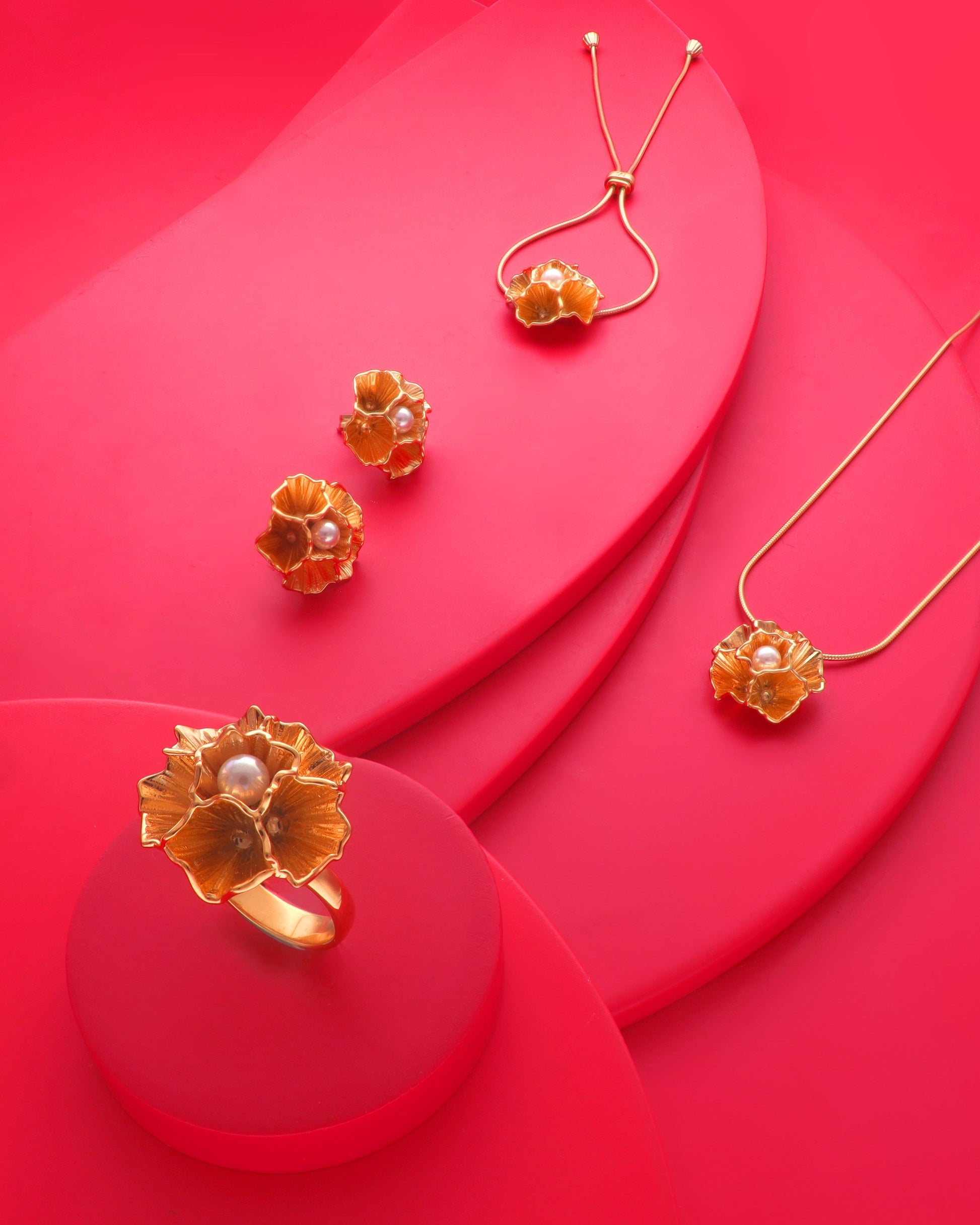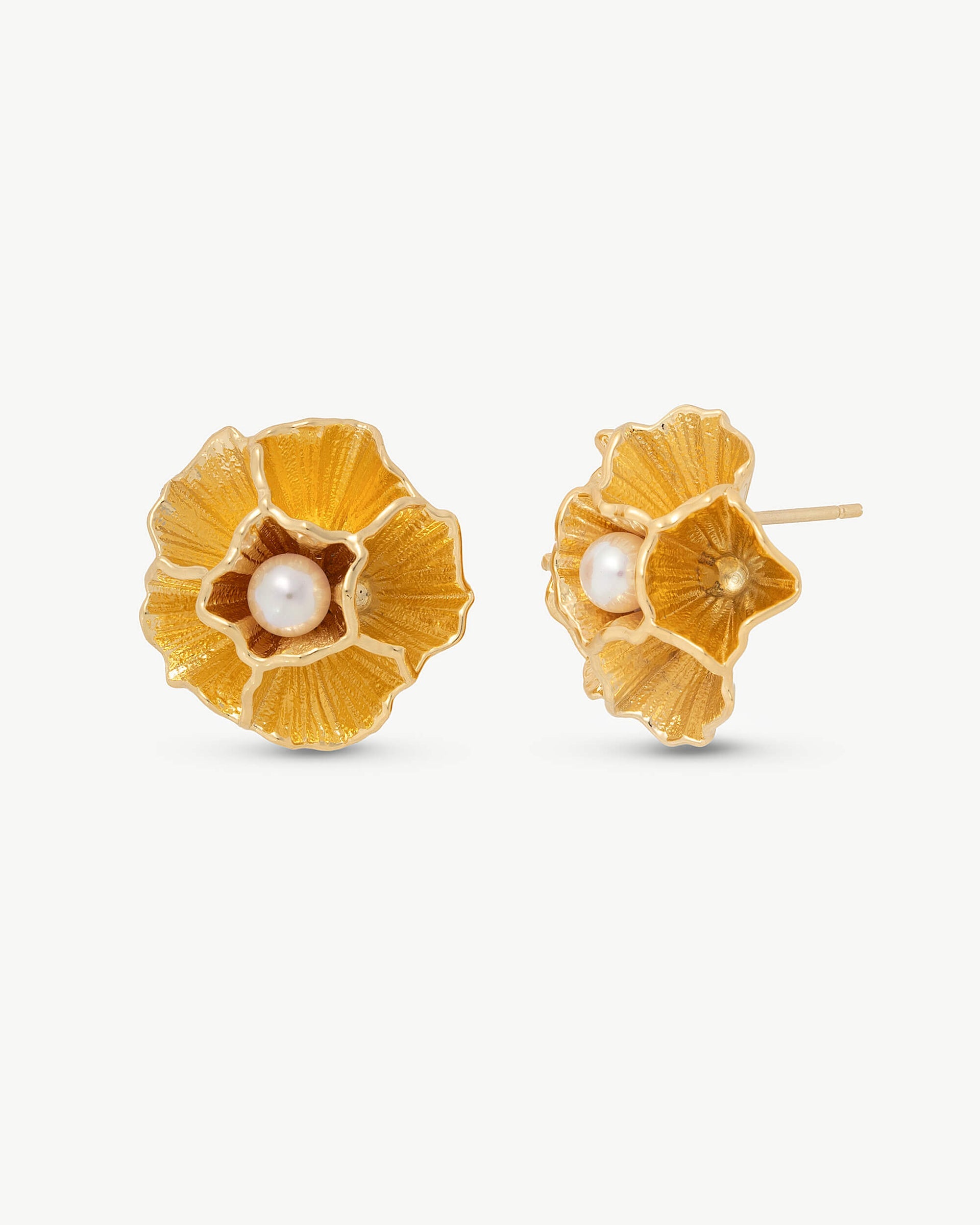 silver earrings with gold plating. Spike closure and 5mm round white pearl. Jewelry full of style Welcome to the freshness and elegance of our new collection, inspired by the south of Spain and its famous carnations! And the collection is like a VIP pass to a garden full of style, where carnations become the stars of the show.