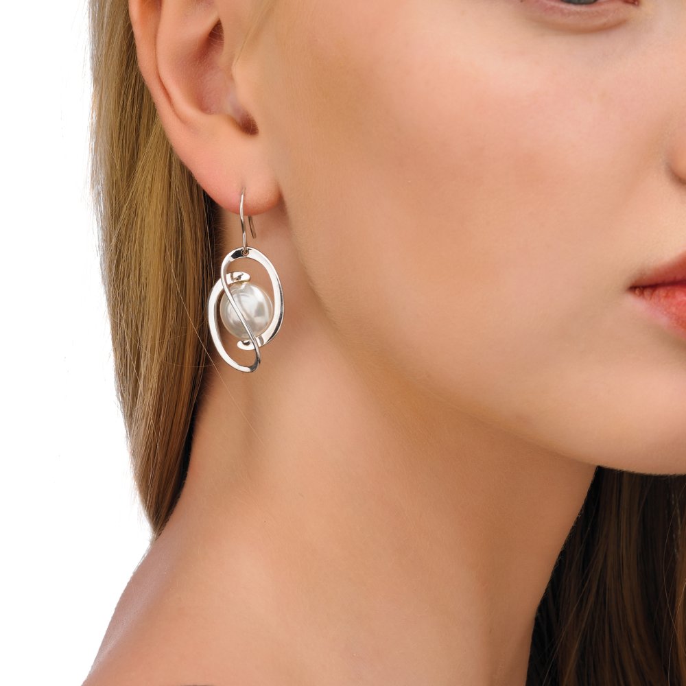 Long hook earrings in rhodium-plated silver, 12mm oval white bombshell pearls. The name of a fantastic island is used to name a collection of plant jewelry in which the pearl is the center of gravity and protagonist.Long hook earrings in rhodium-plated silver, 12mm oval white bombshell pearls. The name of a fantastic island is used to name a collection of plant jewelry in which the pearl is the center of gravity and protagonist.Long hook earrings in rhodium-plated silver, 12mm oval white bombshell pearls. The name of a fantastic island is used to name a collection of plant jewelry in which the pearl is the center of gravity and protagonist.