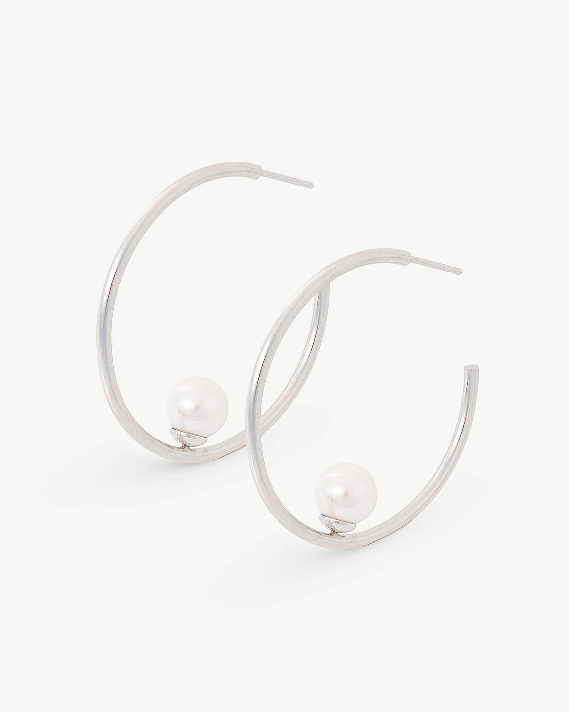 4cm hoop earrings with spike in rhodium-plated silver, 8mm white round pearl.4cm hoop earrings with spike in rhodium-plated silver, 8mm white round pearl.4cm hoop earrings with spike in rhodium-plated silver, 8mm white round pearl.
