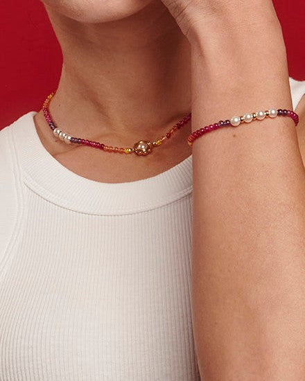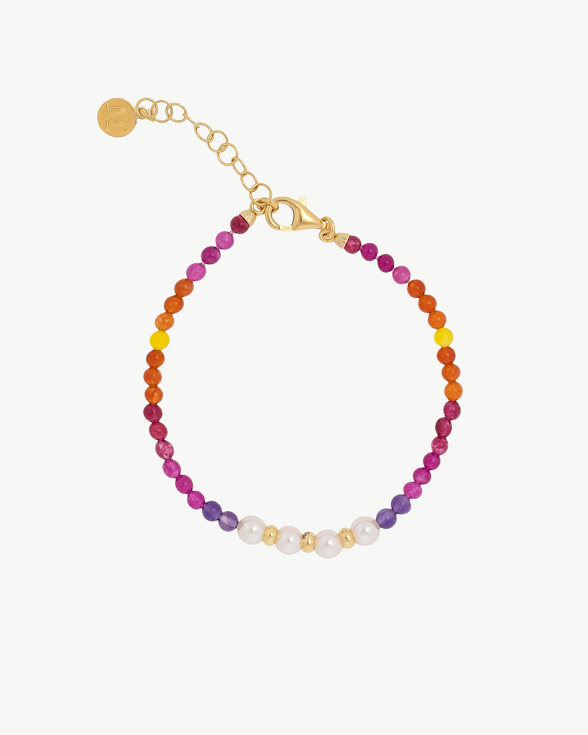 Silver braceletanklet with gold plating and gradient stones in sunset colors. 6mm white round pearls. 17cm long. Energy and fun of the 2000s If colorful jewelry is your thing, bet everything on the new collection iconic jewelry that is born from the color palette so representative of Y2K, today even elevated to a higher level.Silver braceletanklet with gold plating and gradient stones in sunset colors. 6mm white round pearls. 17cm long. Energy and fun of the 2000s If colorful jewelry is your thing, bet everything on the new collection iconic jewelry that is born from the color palette so representative of Y2K, today even elevated to a higSilver braceletanklet with gold plating and gradient stones in sunset colors. 6mm white round pearls. 17cm long. Energy and fun of the 2000s If colorful jewelry is your thing, bet everything on the new collection iconic jewelry that is born from the color palette so representative of Y2K, today even elevated to a hig