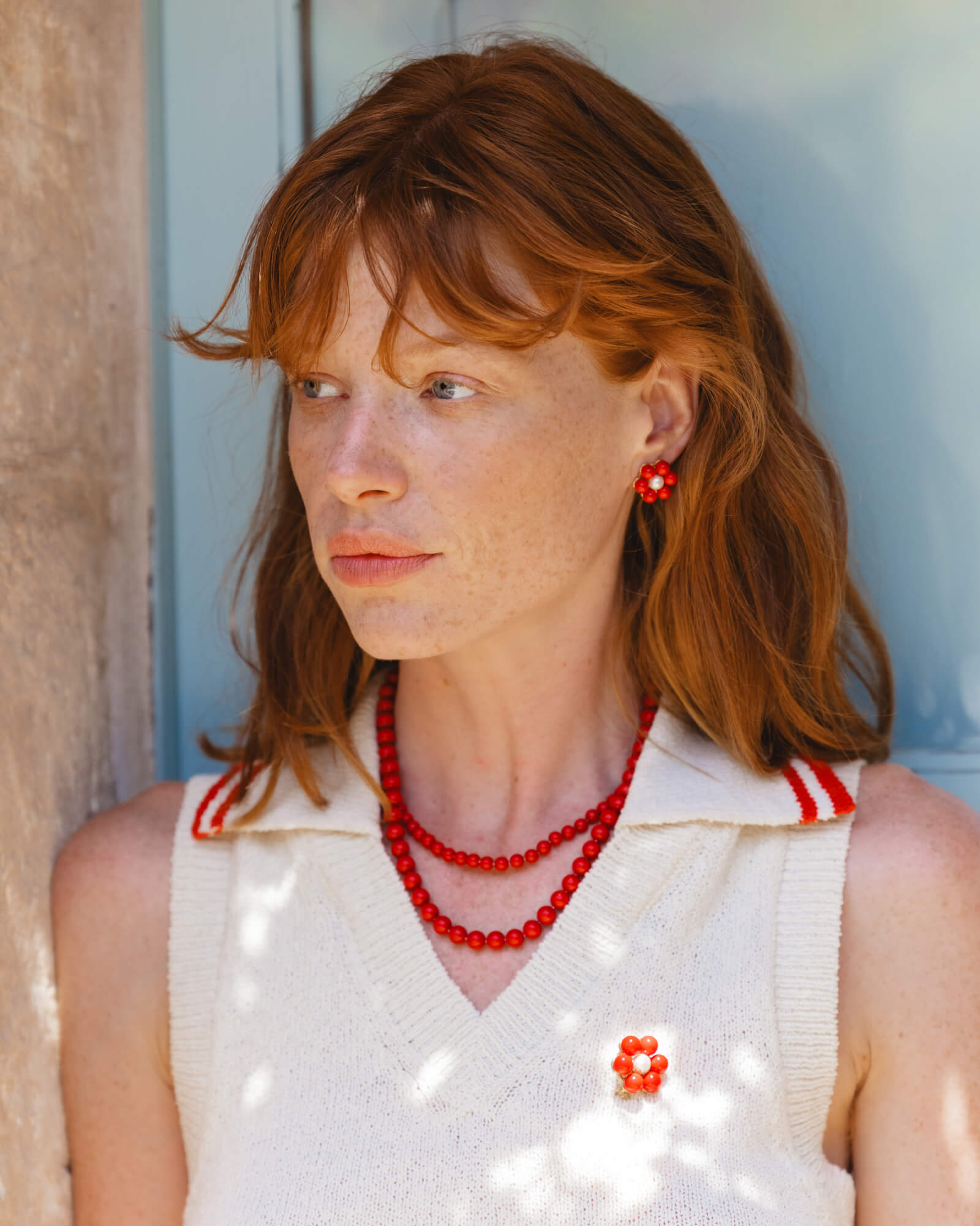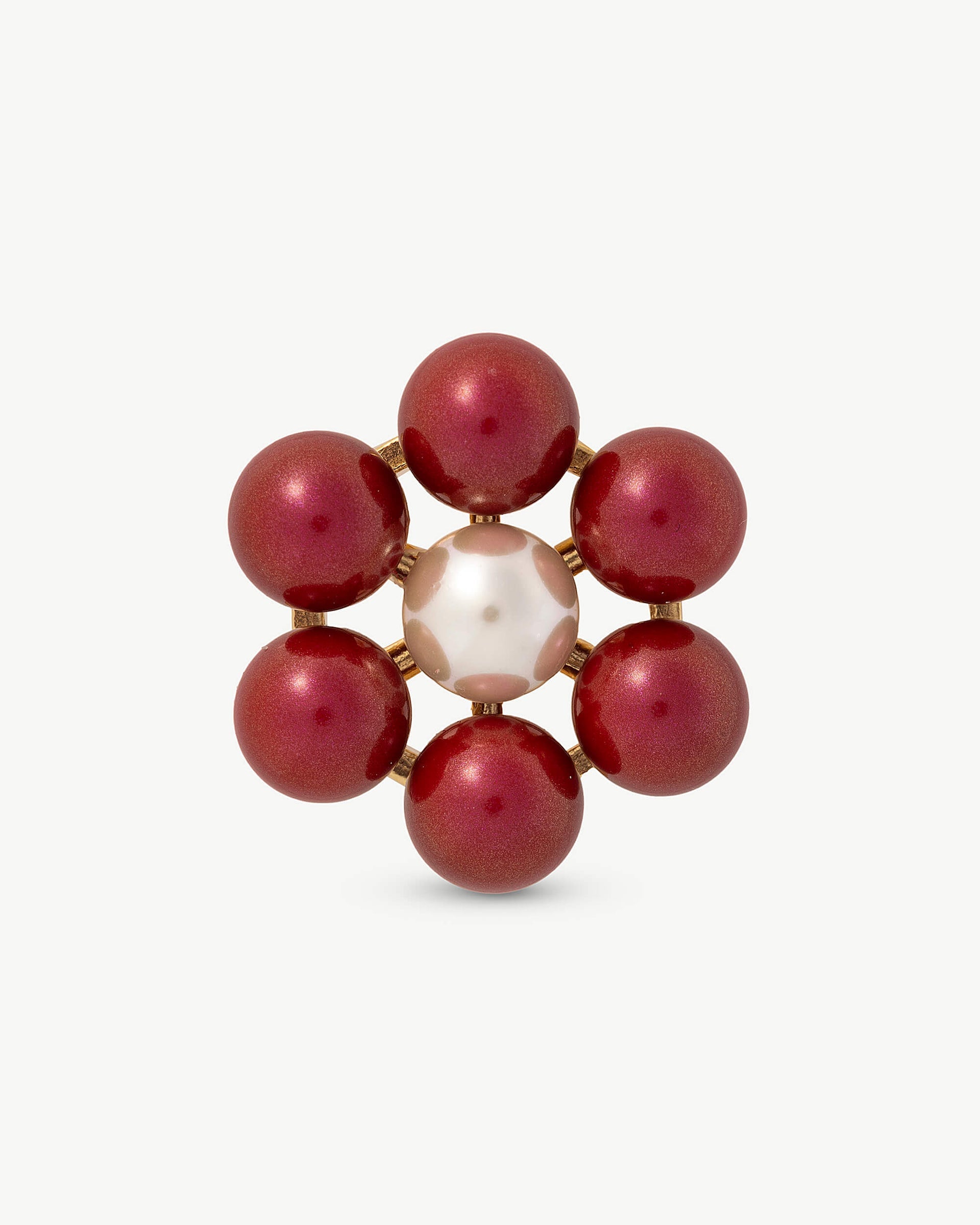 Broochcharm in gilded silver with 8 mm red and white pearls. Majorica flower-shaped brooches from the 1940s inspire new collectionsThe collection is inspired by the flower-shaped closures that Majorica used in the 40s and 50s.Broochcharm in gilded silver with 8 mm red and white pearls. Majorica flower-shaped brooches from the 1940s inspire new collections The collection is inspired by the flower-shaped closures that Majorica used in the 40s and 50s.Broochcharm in gilded silver with 8 mm red and white pearls. Majorica flower-shaped brooches from the 1940s inspire new collections The collection is inspired by the flower-shaped closures that Majorica used in the 40s and 50s.