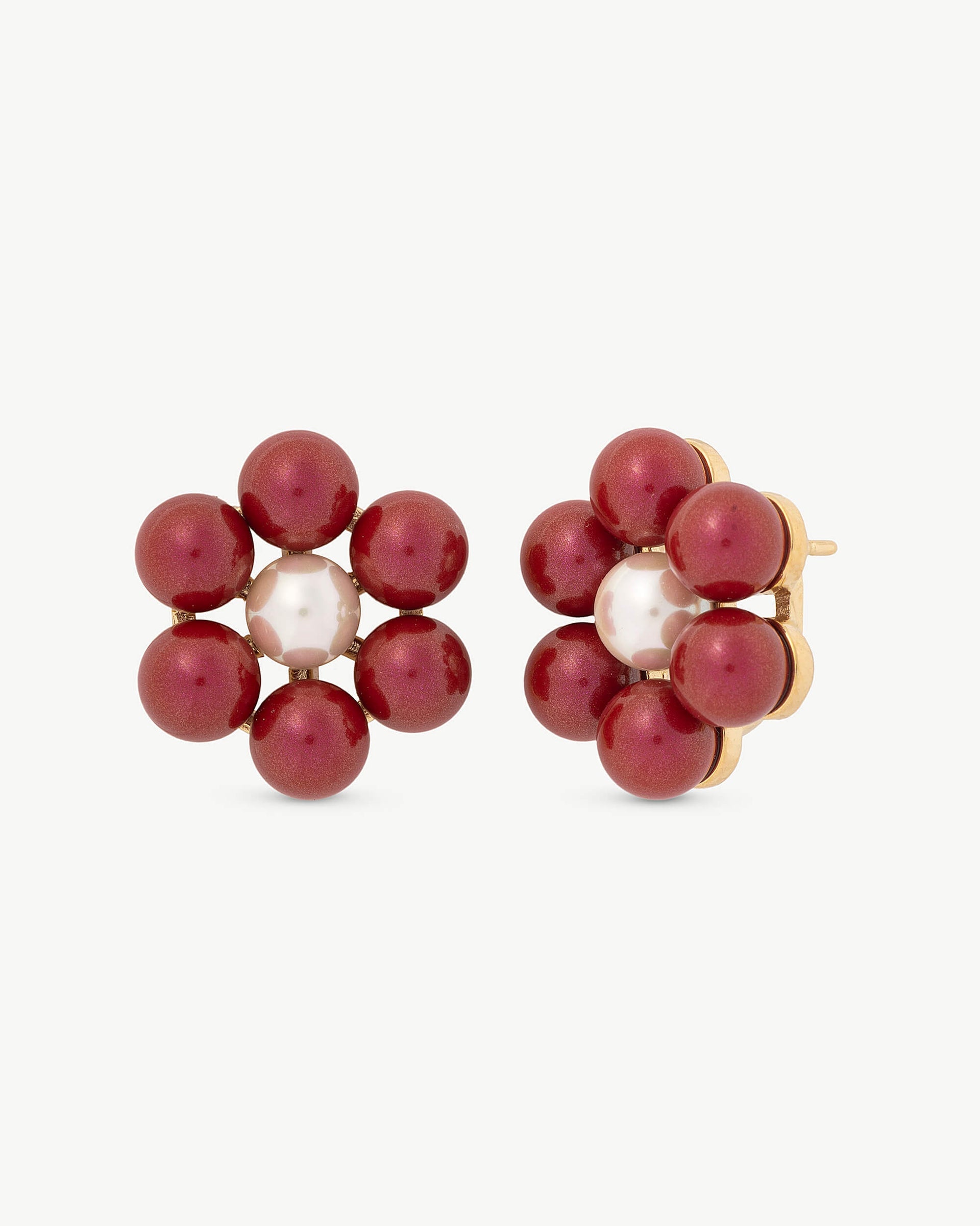Golden silver spike earrings with 6 mm round red and white pearl. Majorica flower-shaped brooches from the 1940s inspire new collectionsThe collection is inspired by the flower-shaped closures that Majorica used in the 40s and 50s.Golden silver spike earrings with 6 mm round red and white pearl. Majorica flower-shaped brooches from the 1940s inspire new collections The collection is inspired by the flower-shaped closures that Majorica used in the 40s and 50s.Golden silver spike earrings with 6 mm round red and white pearl. Majorica flower-shaped brooches from the 1940s inspire new collections The collection is inspired by the flower-shaped closures that Majorica used in the 40s and 50s.