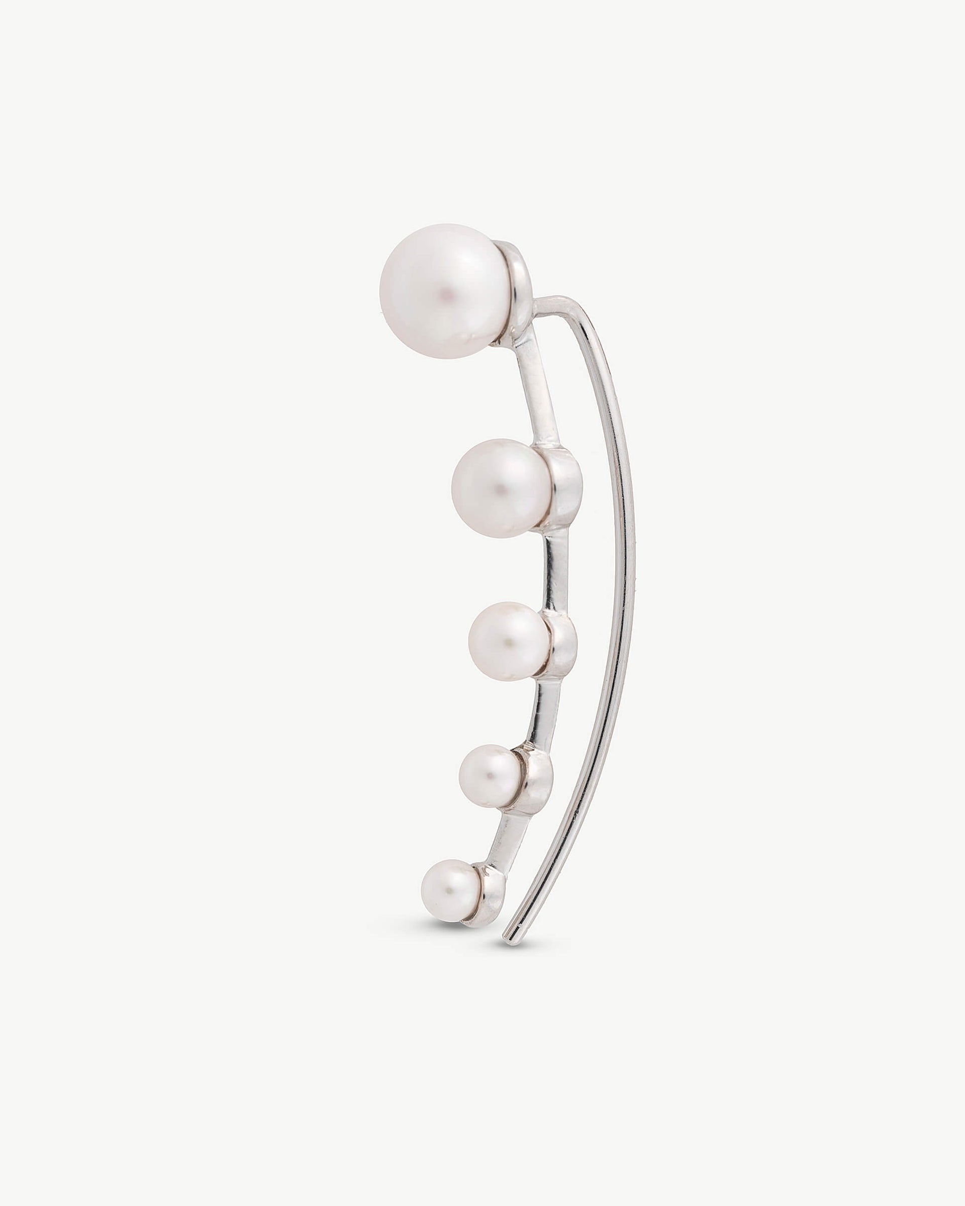 Silver climbing earring. 5 round white pearls of 3, 4.5 and 6 mm. Right ear. Jewelry for special events, ideal accessories to wear on your wedding day.Silver climbing earring. 5 round white pearls of 3, 4.5 and 6 mm. Right ear. Jewelry for special events, ideal accessories to wear on your wedding day.Silver climbing earring. 5 round white pearls of 3, 4.5 and 6 mm. Right ear. Jewelry for special events, ideal accessories to wear on your wedding day.