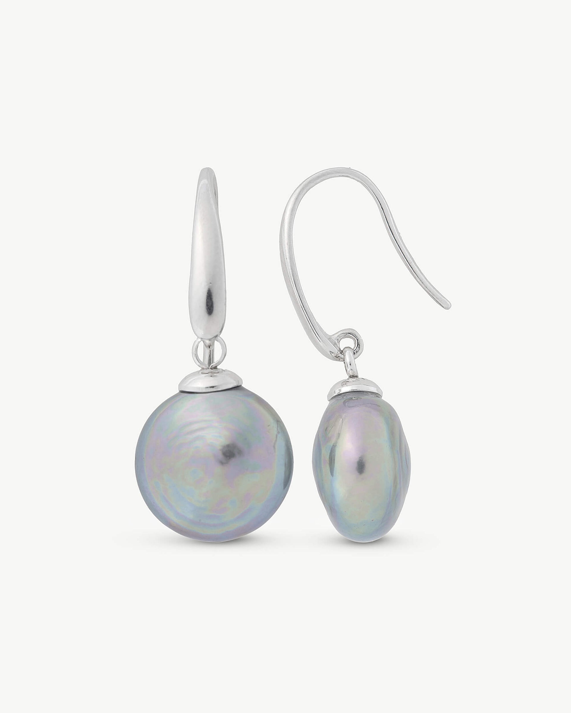 Short hook earrings in rhodium-plated silver, 12mm gray oval pearl beads. Its design provides fresh and versatile air, allowing you to express your personal style for any occasion.Short hook earrings in rhodium-plated silver, 12mm gray oval pearl beads. Its design provides fresh and versatile air, allowing you to express your personal style for any occasion.Short hook earrings in rhodium-plated silver, 12mm gray oval pearl beads. Its design provides fresh and versatile air, allowing you to express your personal style for any occasion.