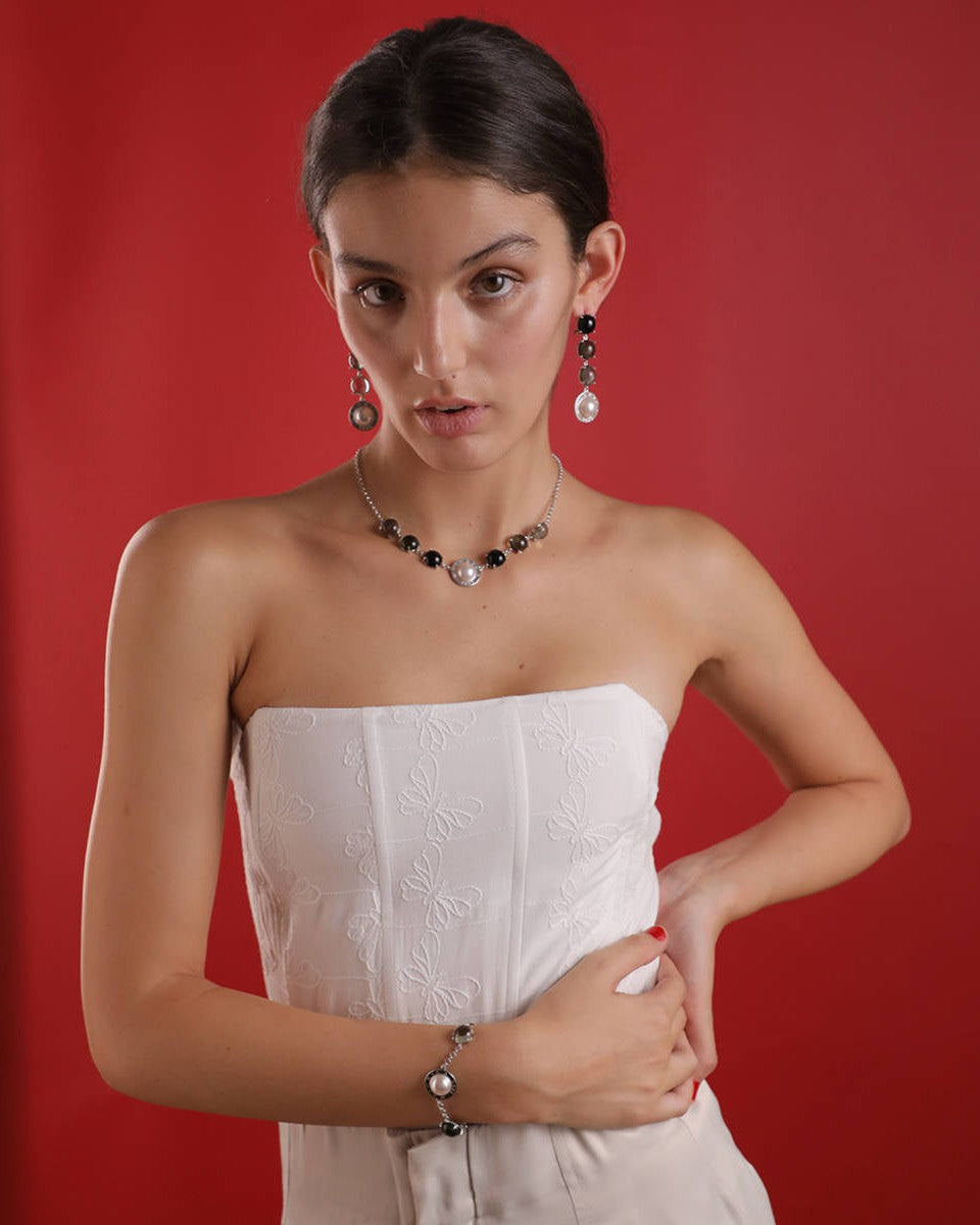 Short 4146 cm chain necklace in rhodium-plated silver, 12 mm white half ball pearl and black Murano crystals. The collection shares its name with one of the Mallorcan towns with the most craftsmanship on the island.Short 4146 cm chain necklace in rhodium-plated silver, 12 mm white half ball pearl and black Murano crystals. The collection shares its name with one of the Mallorcan towns with the most craftsmanship on the island.Short 4146 cm chain necklace in rhodium-plated silver, 12 mm white half ball pearl and black Murano crystals. The collection shares its name with one of the Mallorcan towns with the most craftsmanship on the island.