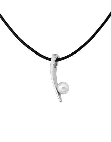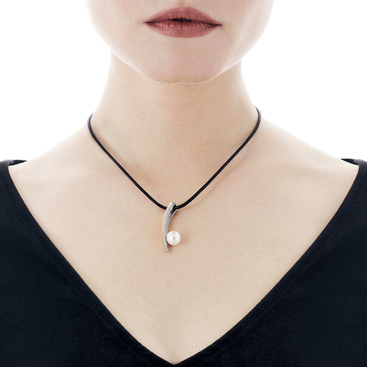 Short black leather necklace measuring 4349cm. with closure and decorations in rhodium-plated steel. With a 10mm white round pearl.Short black leather necklace measuring 4349cm. with closure and decorations in rhodium-plated steel. With a 10mm white round pearl.Short black leather necklace measuring 4349cm. with closure and decorations in rhodium-plated steel. With a 10mm white round pearl.
