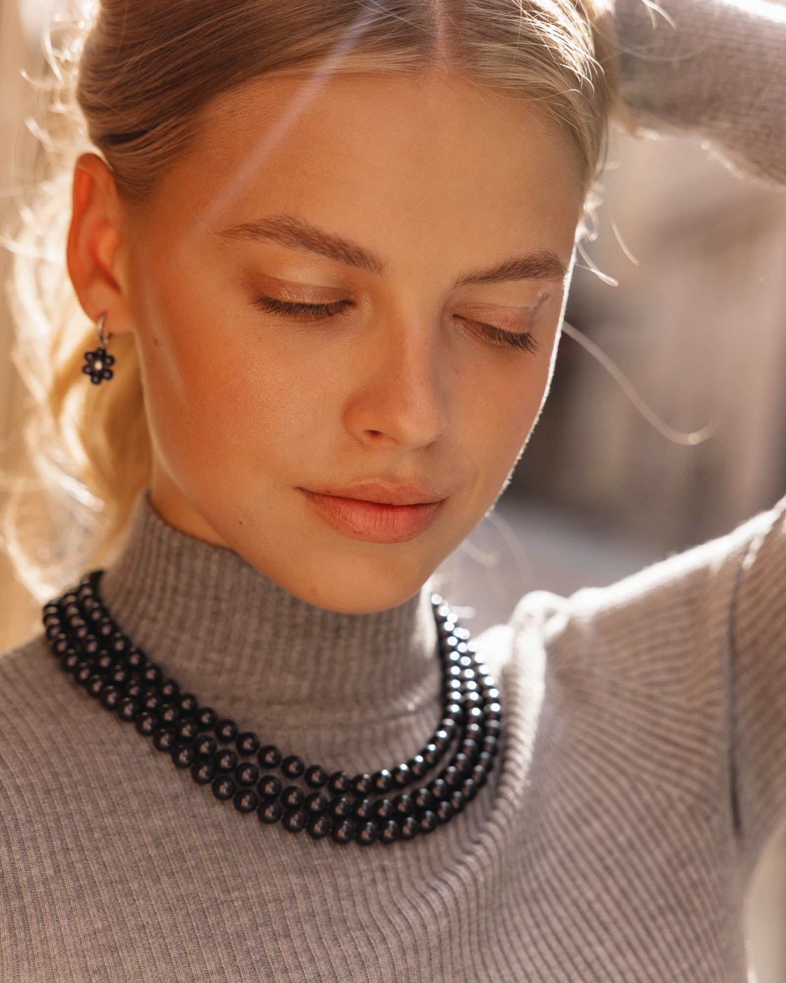 Three-strand necklace with 8mm black round pearl. The king of pearls is the three-strand necklace