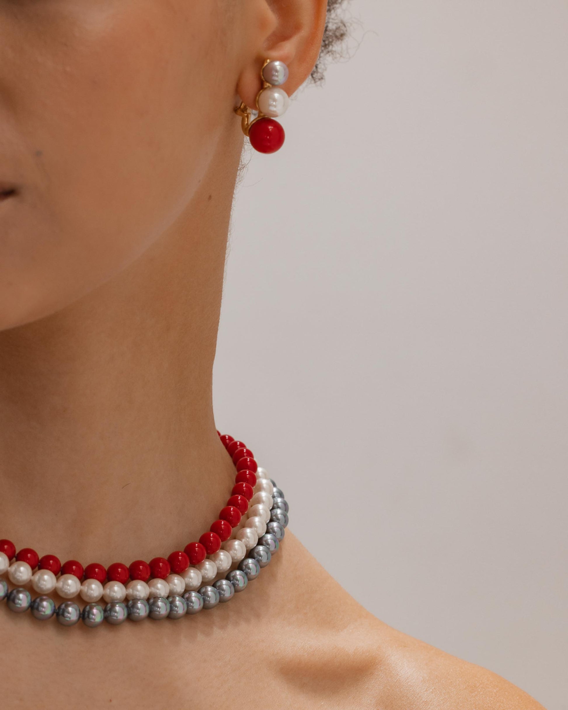 Three-Row Red, White and Gray Pearl Necklace Elizabeth