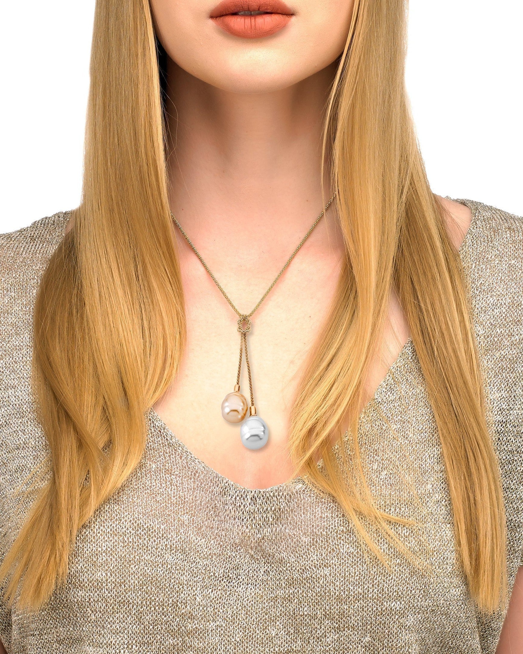 Short 4045cm necklace in golden silver, 14mm white and champagne baroque pearls. For this collection of bracelets, rings and earrings, made of high-quality steel and adorned with pearls, each piece has been created to combine the sobriety of steel with the timelessness of pearls.Short 4045cm necklace in golden silver, 14mm white and champagne baroque pearls. For this collection of bracelets, rings and earrings, made of high-quality steel and adorned with pearls, each piece has been created to combine the sobriety of steel with the timelessness of pearls.Short 4045cm necklace in golden silver, 14mm white and champagne baroque pearls. For this collection of bracelets, rings and earrings, made of high-quality steel and adorned with pearls, each piece has been created to combine the sobriety of steel with the timelessness of pearls.