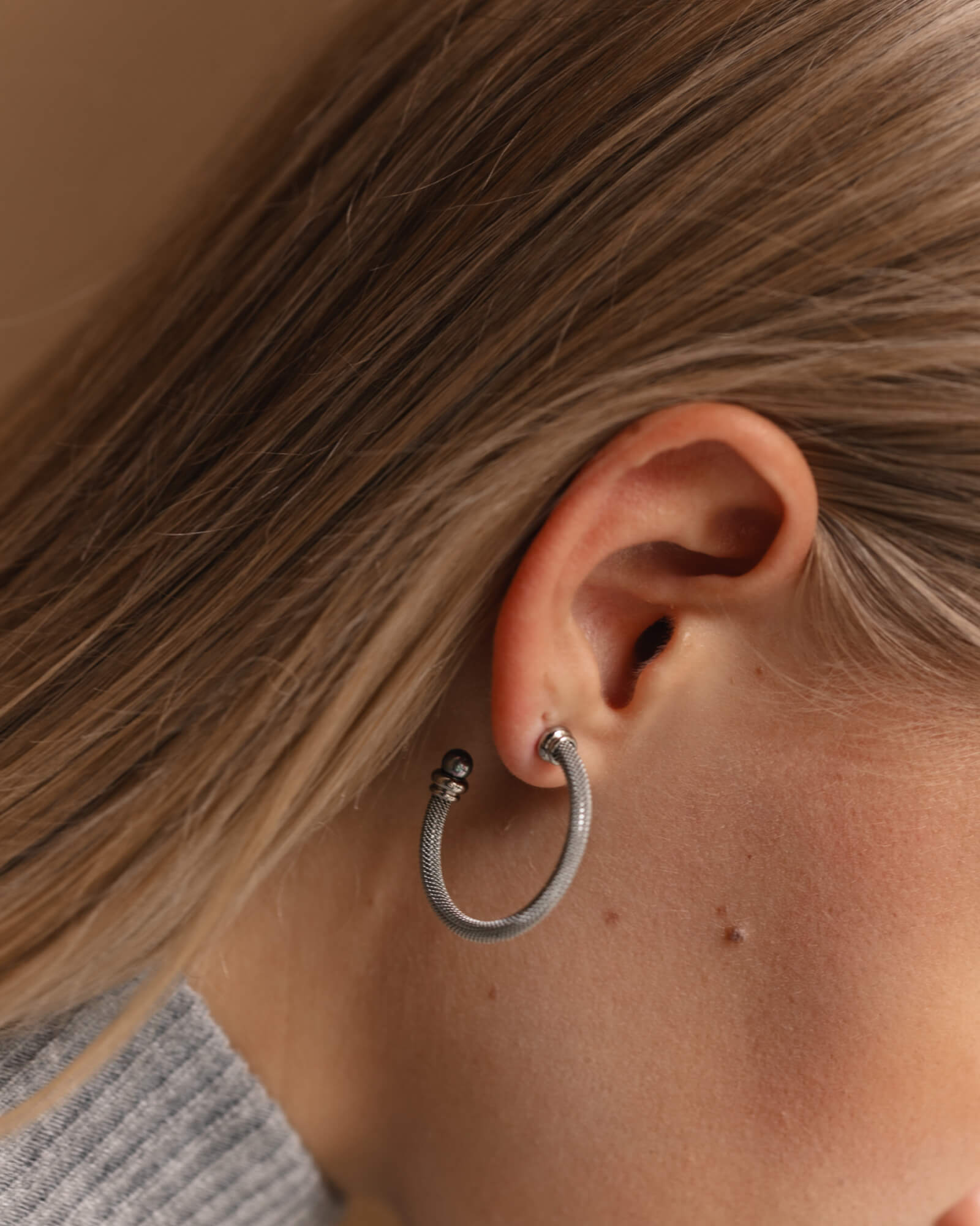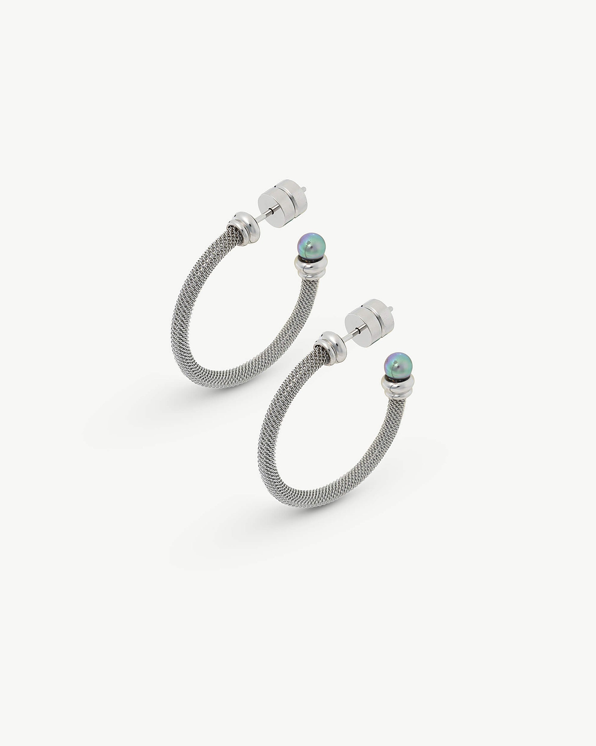 Steel hoop earrings with 4mm gray round pearl and spike closure.For this collection of bracelets, rings and earrings, made of high-quality steel and adorned with pearls, each piece has been created to combine the sobriety of steel with the timelessness of pearls.Steel hoop earrings with 4mm gray round pearl and spike closure. For this collection of bracelets, rings and earrings, made of high-quality steel and adorned with pearls, each piece has been created to combine the sobriety of steel with the timelessness of pearls.Steel hoop earrings with 4mm gray round pearl and spike closure. For this collection of bracelets, rings and earrings, made of high-quality steel and adorned with pearls, each piece has been created to combine the sobriety of steel with the timelessness of pearls.