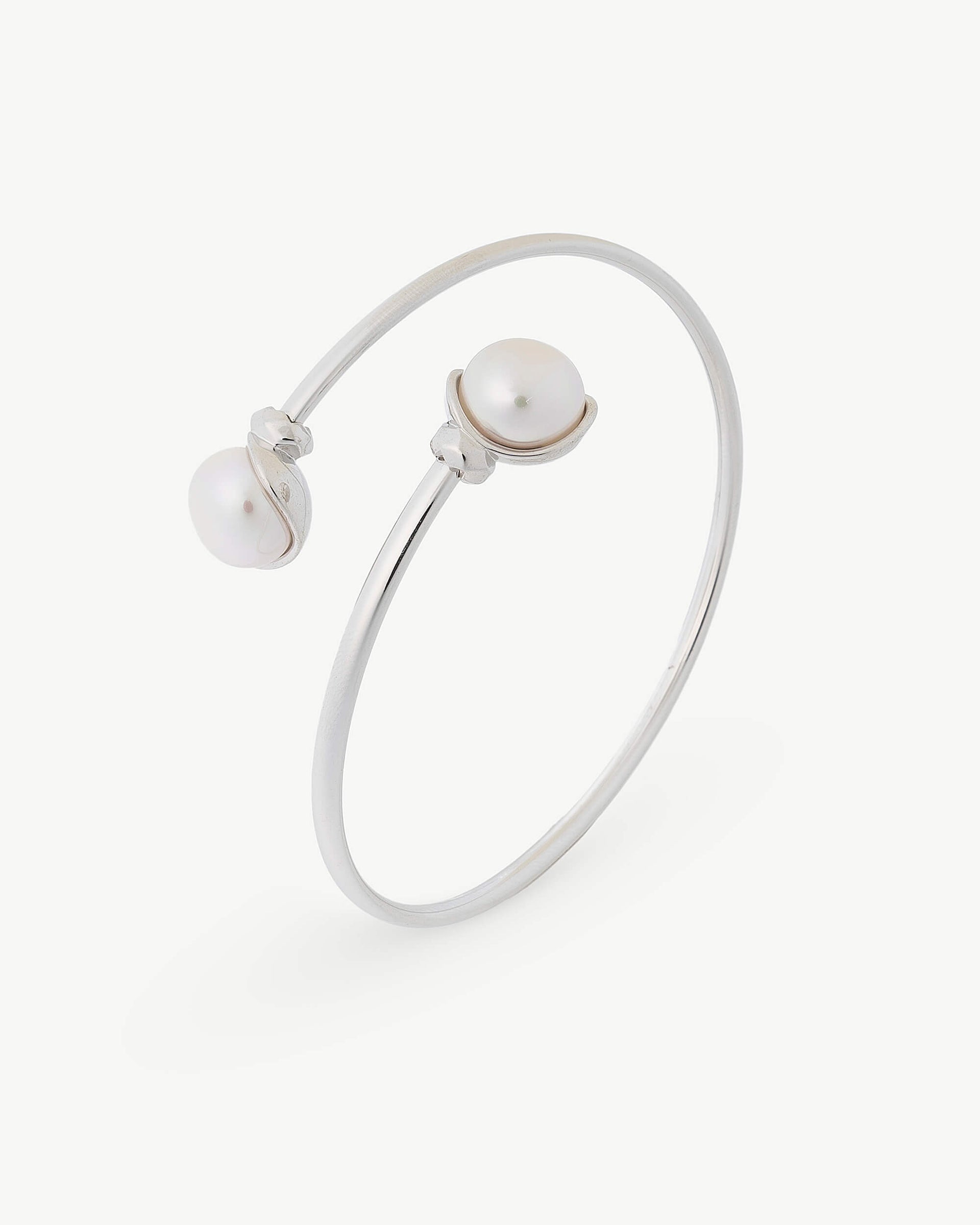 Rigid 46x58mm bracelet in rhodium-plated silver, 10mm round white crushed pearl.