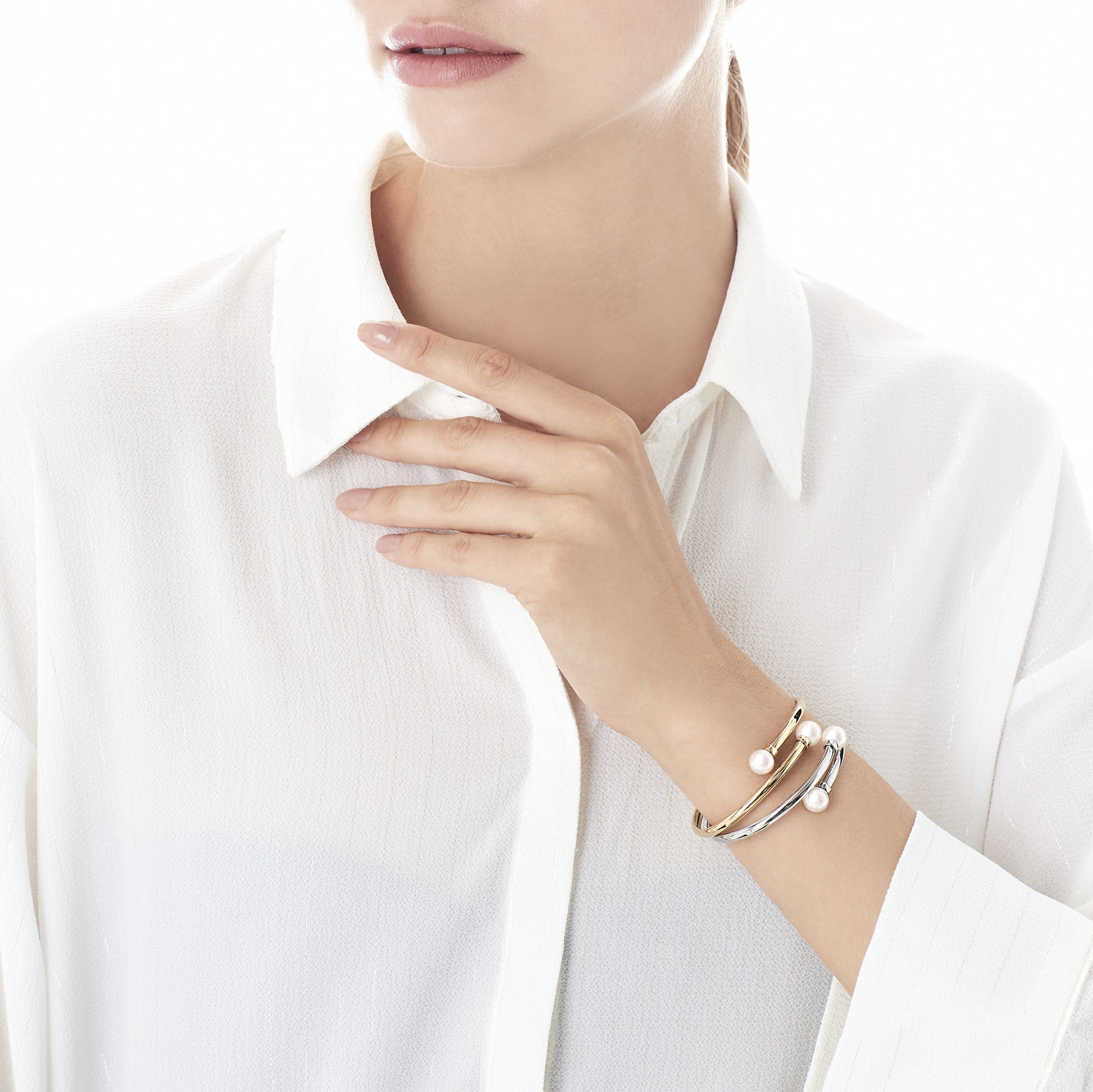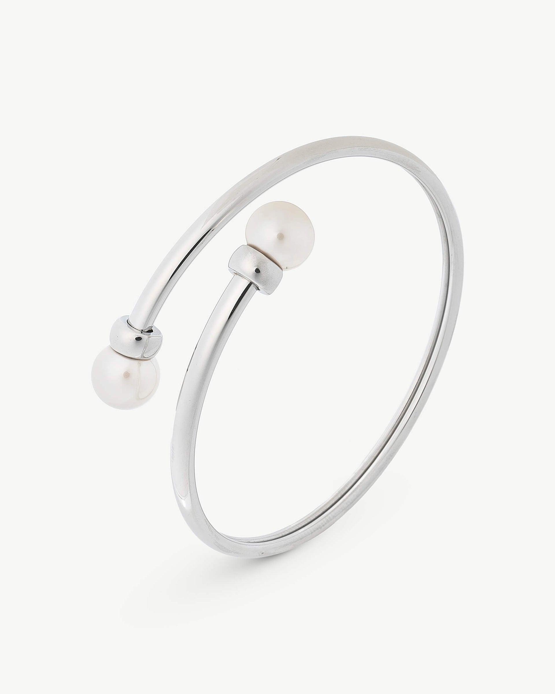 Rigid 58mm oval steel bracelet, 9mm white round pearls. , the collection of jewelry made of stainless steel, a statement of trends.Rigid 58mm oval steel bracelet, 9mm white round pearls. , the collection of jewelry made of stainless steel, a statement of trends.Rigid 58mm oval steel bracelet, 9mm white round pearls. , the collection of jewelry made of stainless steel, a statement of trends.