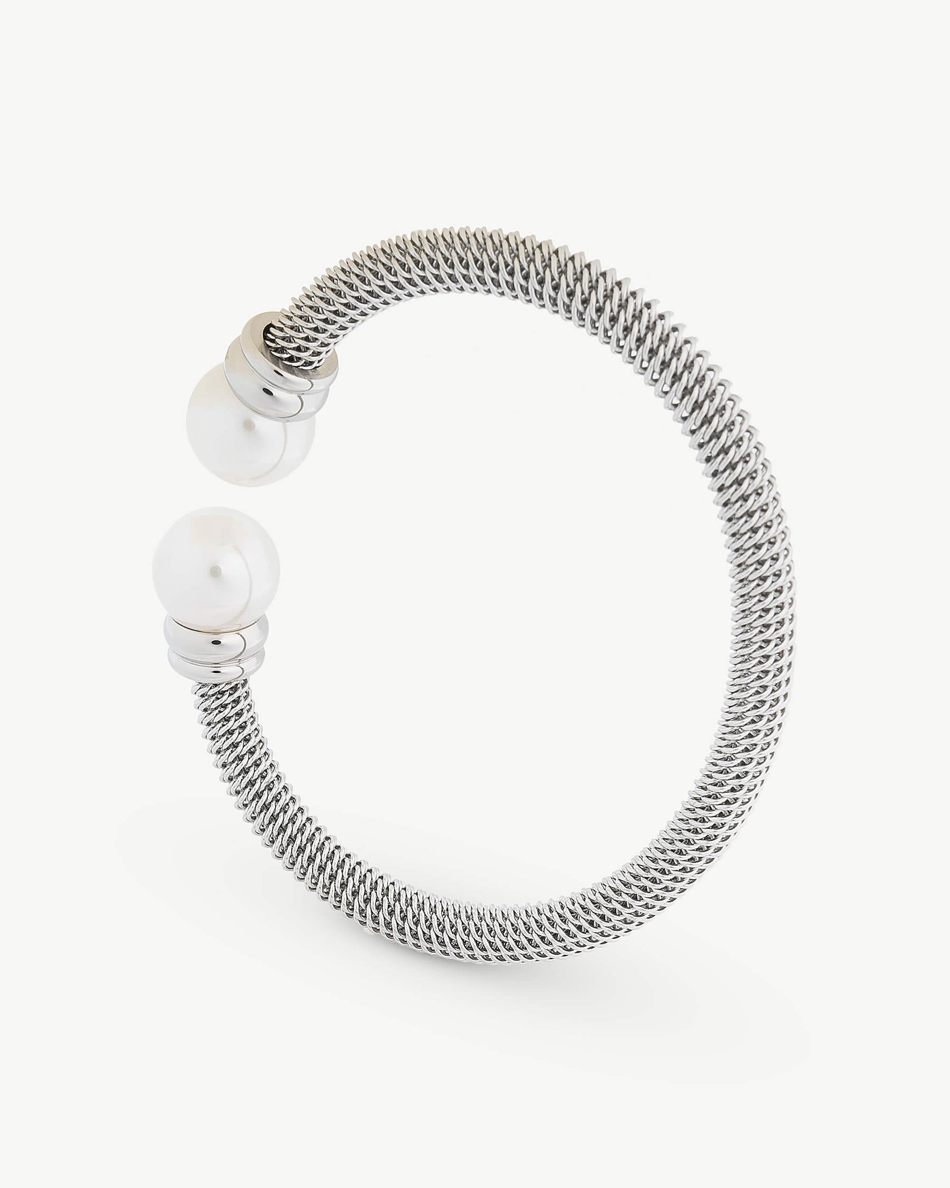 Rigid bracelet in rhodium-plated steel, 12mm white round pearls. For this collection of bracelets, rings and earrings, made of high-quality steel and adorned with pearls, each piece has been created to combine the sobriety of steel with the timelessness of pearls.Rigid bracelet in rhodium-plated steel, 12mm white round pearls. For this collection of bracelets, rings and earrings, made of high-quality steel and adorned with pearls, each piece has been created to combine the sobriety of steel with the timelessness of pearls.Rigid bracelet in rhodium-plated steel, 12mm white round pearls. For this collection of bracelets, rings and earrings, made of high-quality steel and adorned with pearls, each piece has been created to combine the sobriety of steel with the timelessness of pearls.