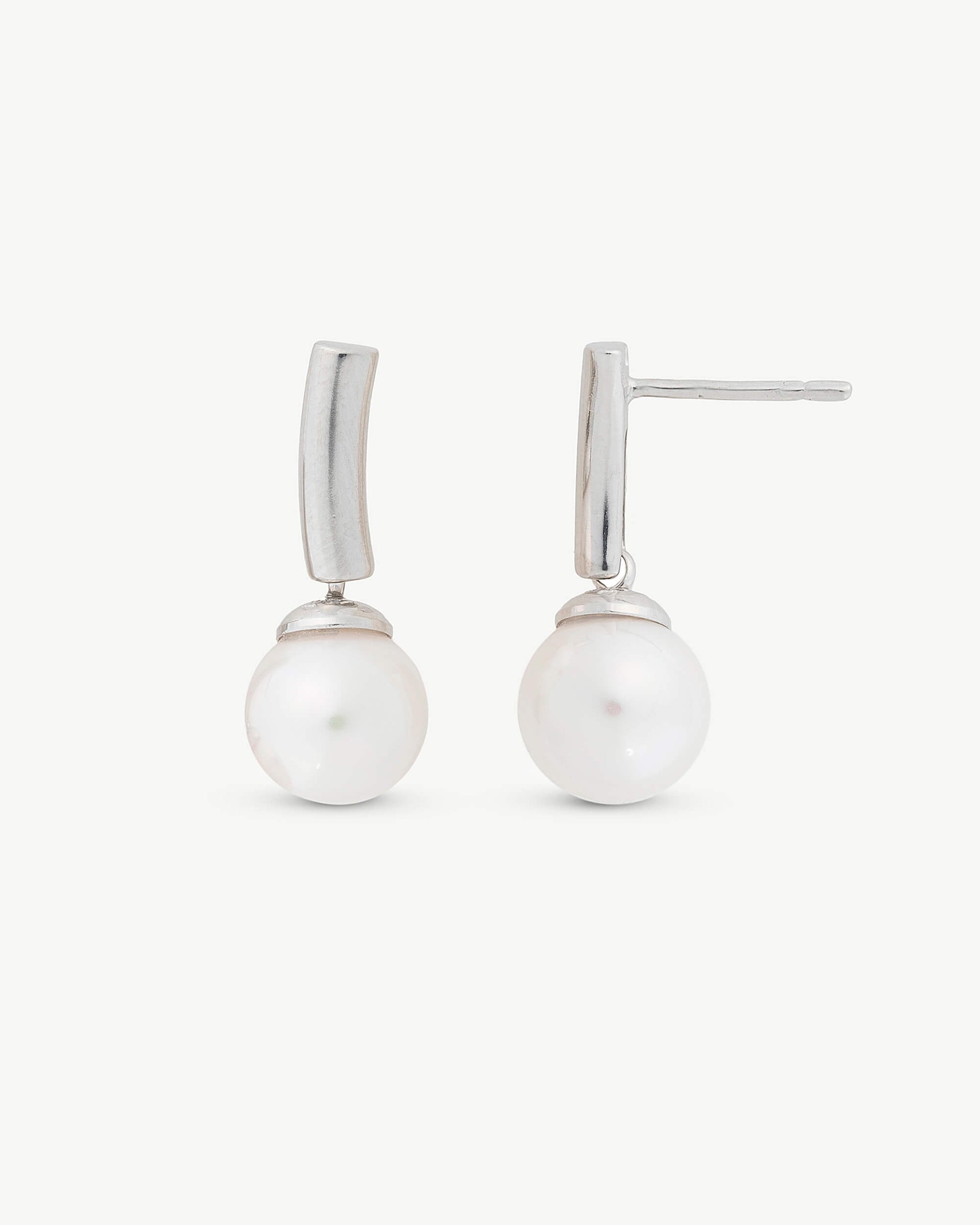 Short spike earrings in rhodium-plated silver, 8mm white round pearls. A collection of 8mm pearl earrings.Short spike earrings in rhodium-plated silver, 8mm white round pearls. A collection of 8mm pearl earrings.Short spike earrings in rhodium-plated silver, 8mm white round pearls. A collection of 8mm pearl earrings.