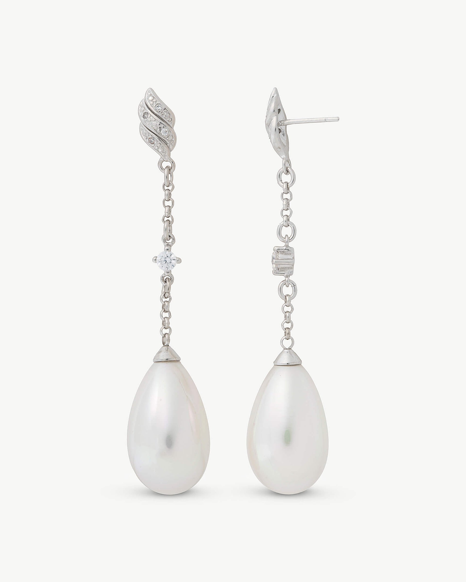 Long spike earrings in rhodium-plated silver, 12x20mm white pear pearls and zircons. Along with the pearls, the zircons take center stage in this exquisite collection.Long spike earrings in rhodium-plated silver, 12x20mm white pear pearls and zircons. Along with the pearls, the zircons take center stage in this exquisite collection.Long spike earrings in rhodium-plated silver, 12x20mm white pear pearls and zircons. Along with the pearls, the zircons take center stage in this exquisite collection.