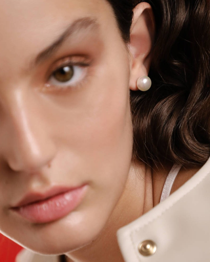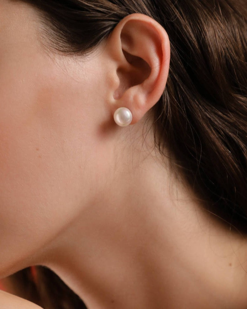 Ball earrings with spike in golden silver, 10mm round white crushed pearl. Its design provides fresh and versatile air, allowing you to express your personal style for any occasion.