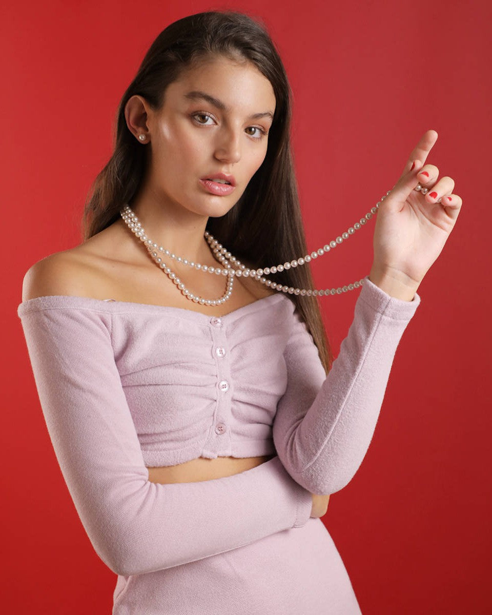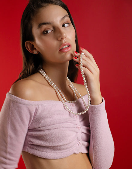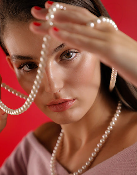 150cm long necklace, 8mm white round pearls. The classics that never go out of style.