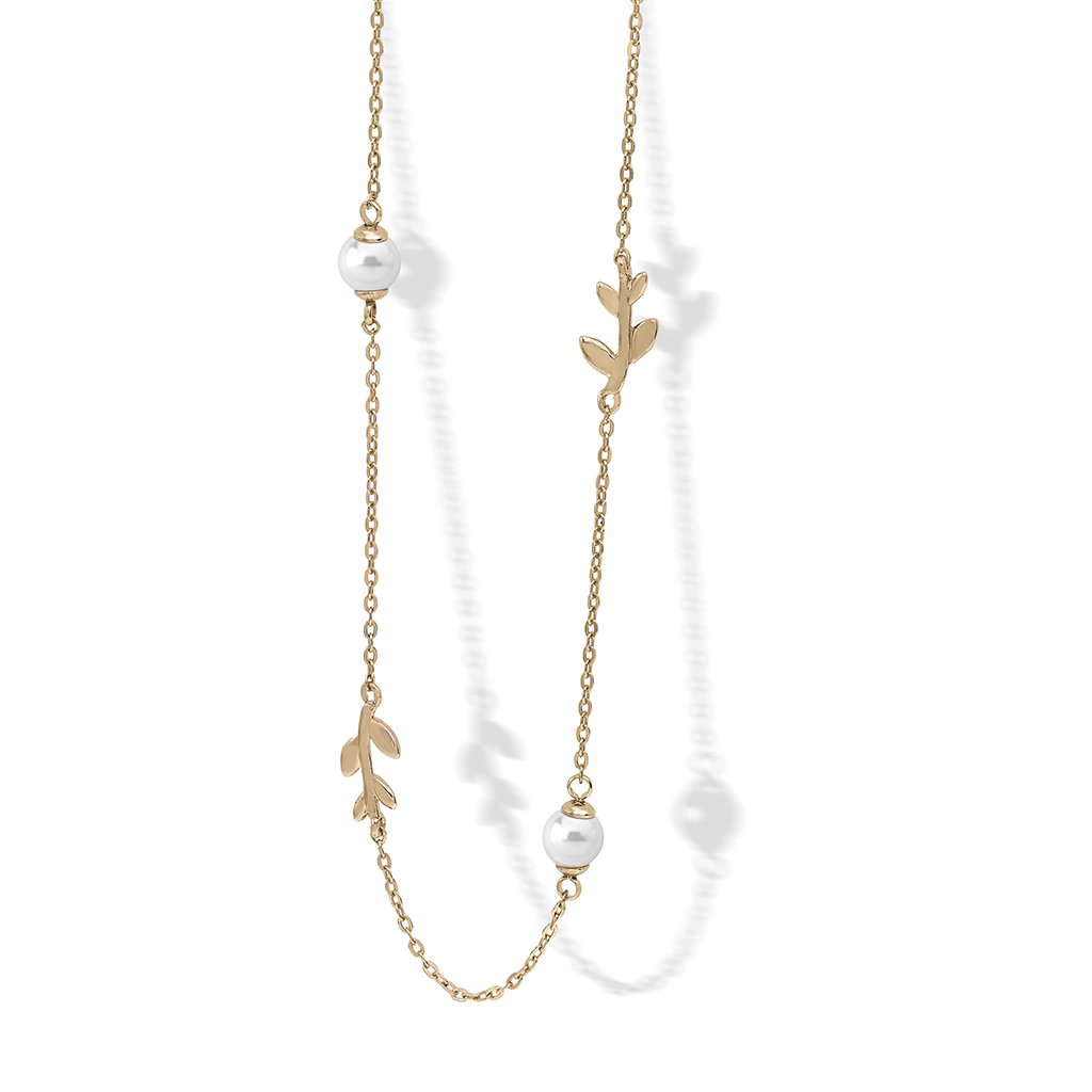 Short chained necklace of 3742cm in golden silver, 5mm white round pearls.