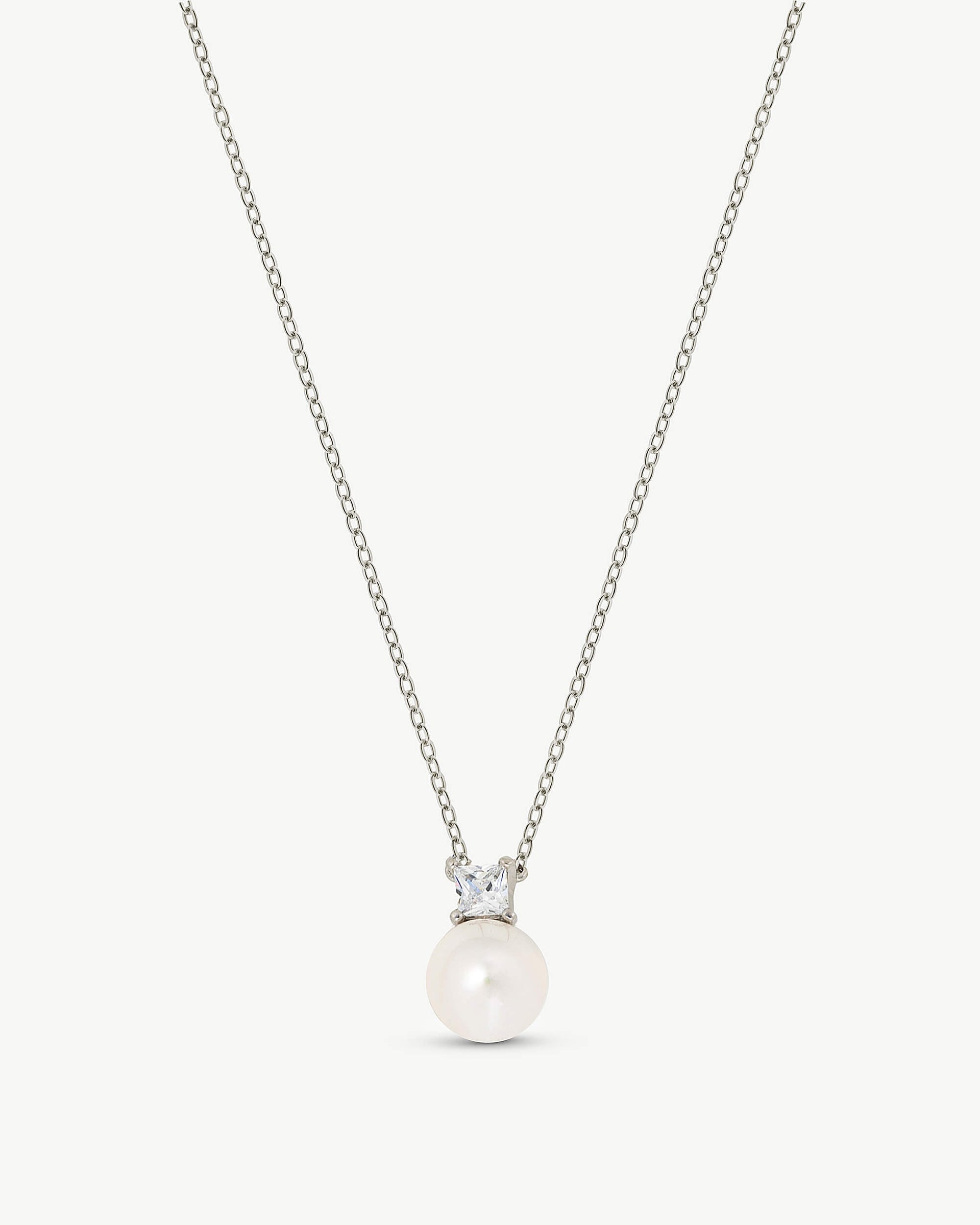 Short necklace 4247cm in rhodium-plated silver, 12mm white round pearl and zircons. Jewelry for your daily life.