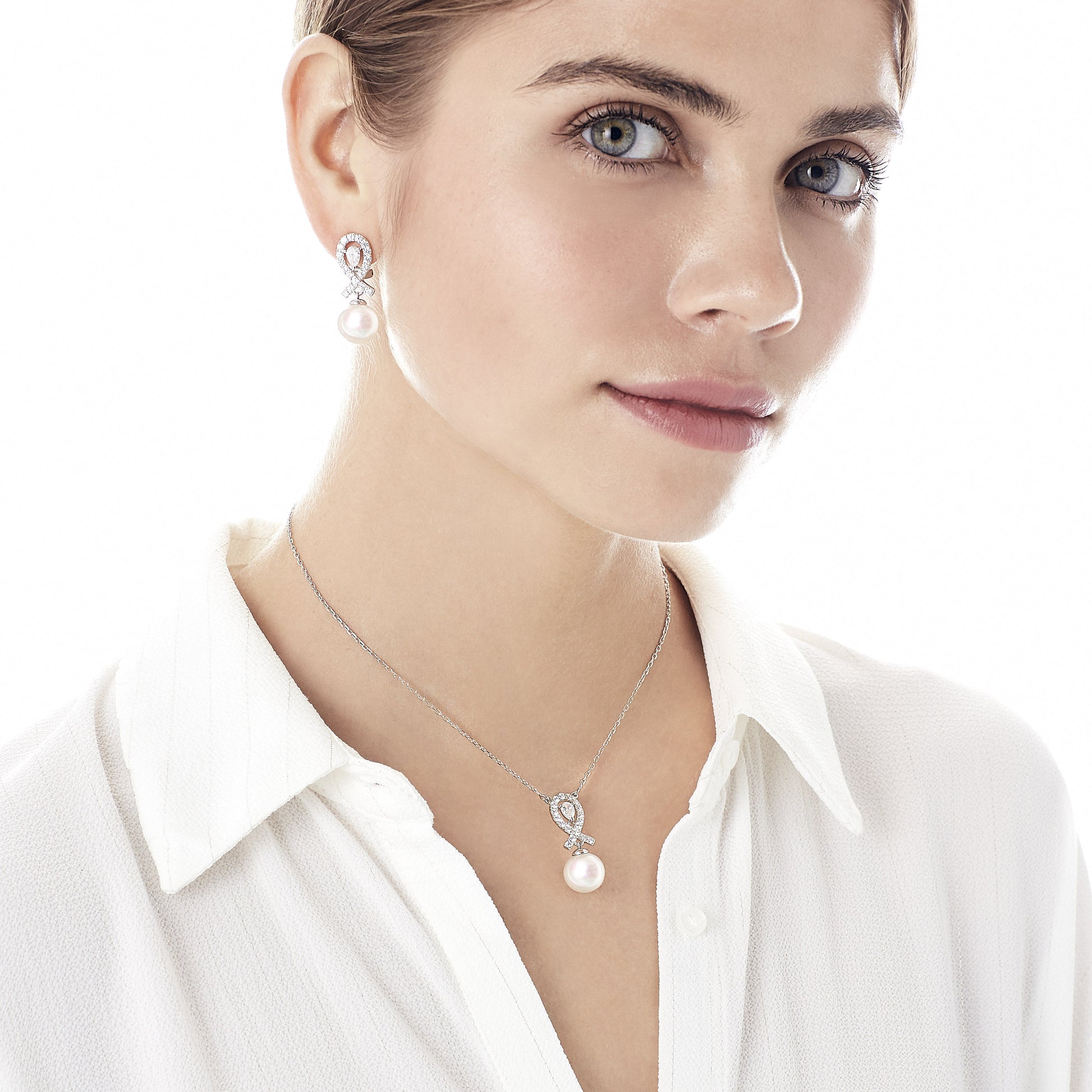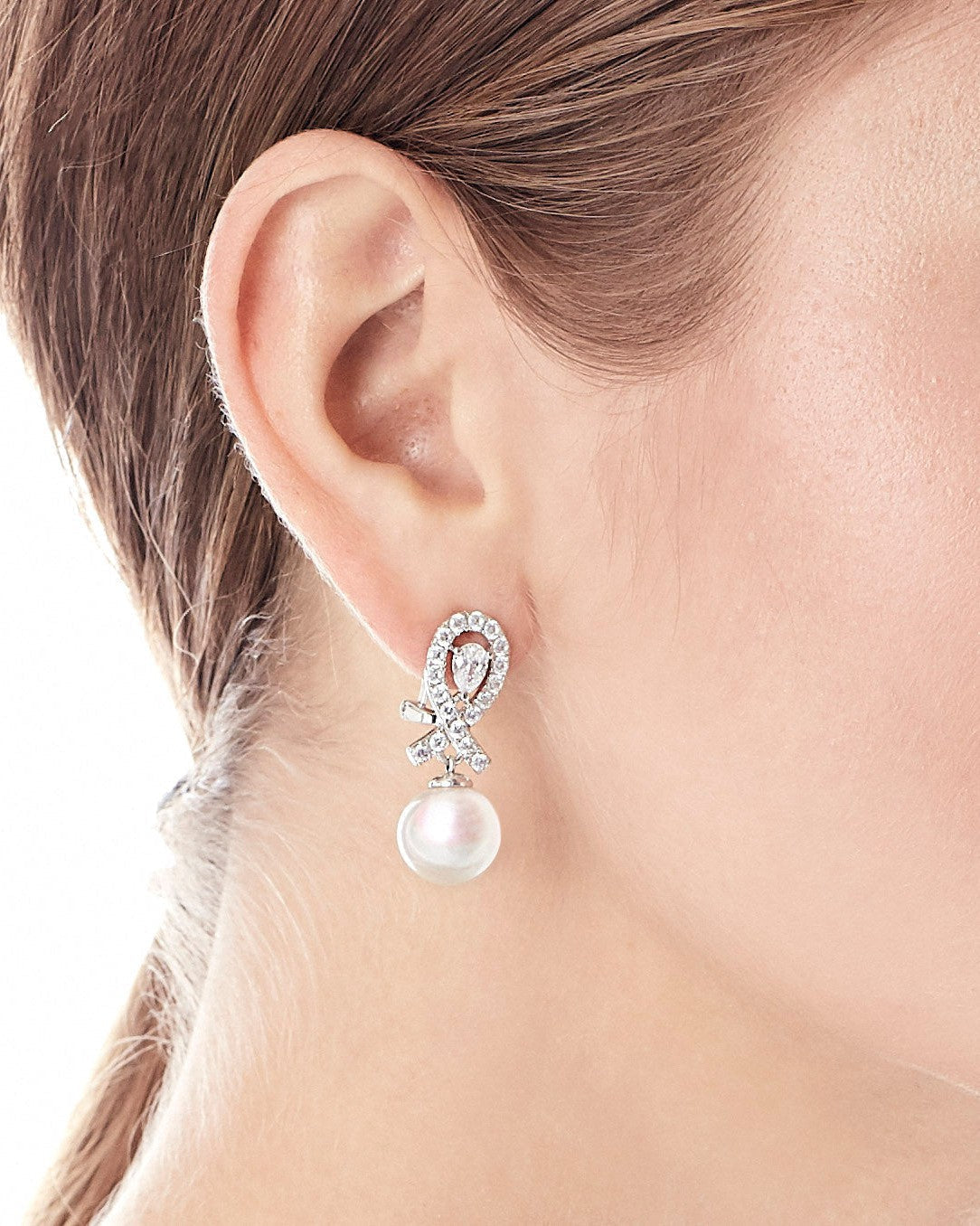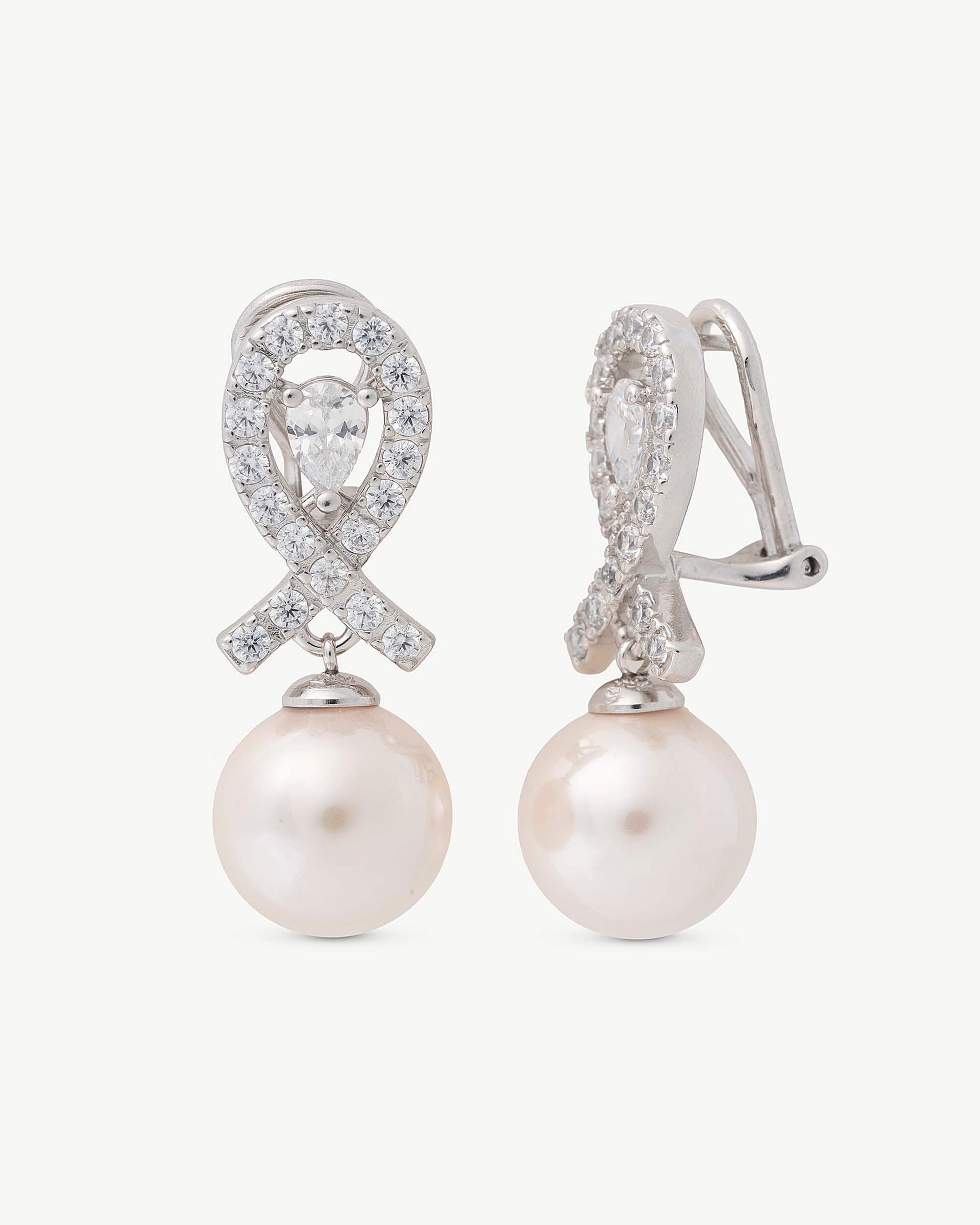 Omega earrings with short spikes in rhodium-plated silver, 12mm white round pearls and zircons. Along with the pearls, the zircons take center stage in this exquisite collection.Omega earrings with short spikes in rhodium-plated silver, 12mm white round pearls and zircons. Along with the pearls, the zircons take center stage in this exquisite collection.Omega earrings with short spikes in rhodium-plated silver, 12mm white round pearls and zircons. Along with the pearls, the zircons take center stage in this exquisite collection.