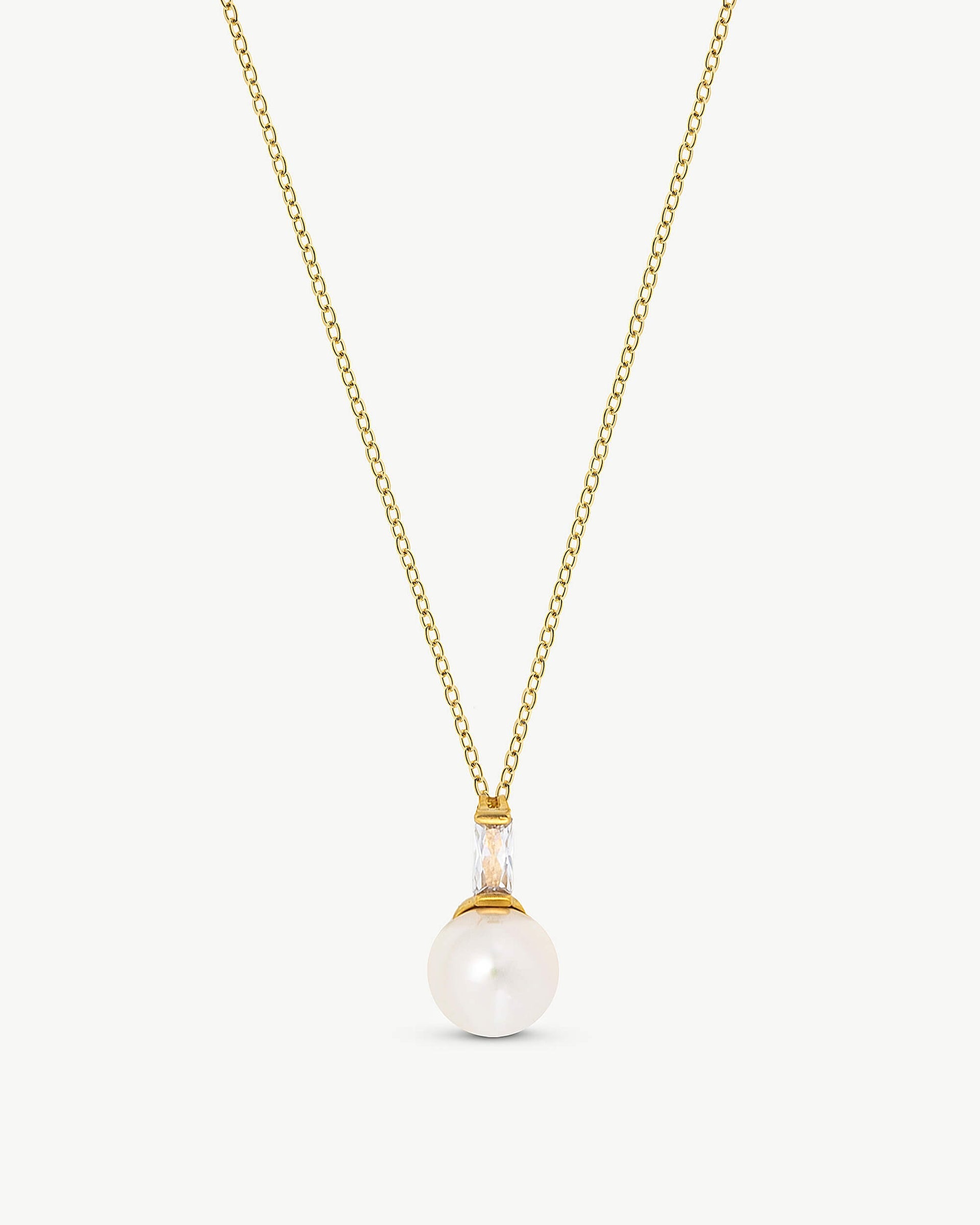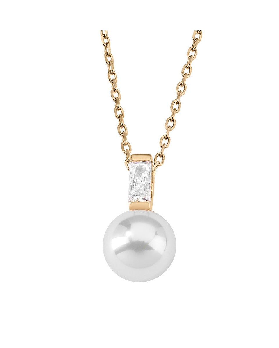 Pendant with 48cm chain in golden silver, 10mm white round pearl and zircon. Jewelry for your daily life.Pendant with 48cm chain in golden silver, 10mm white round pearl and zircon. Jewelry for your daily life.Pendant with 48cm chain in golden silver, 10mm white round pearl and zircon. Jewelry for your daily life.